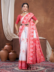 Red & White Chanderi Cotton Saree For Durga Puja