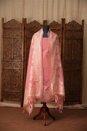 Meadow Motifs Pink Pichwai Jamdani Muga Cotton Unstitched Suit Set